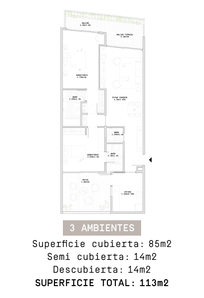 Los departamentos se presentan en tipologías de 2 ambientes + escritorio en duplex, 3, 4 y 5 ambientes + dependencia, family y balcones aterrazados.
